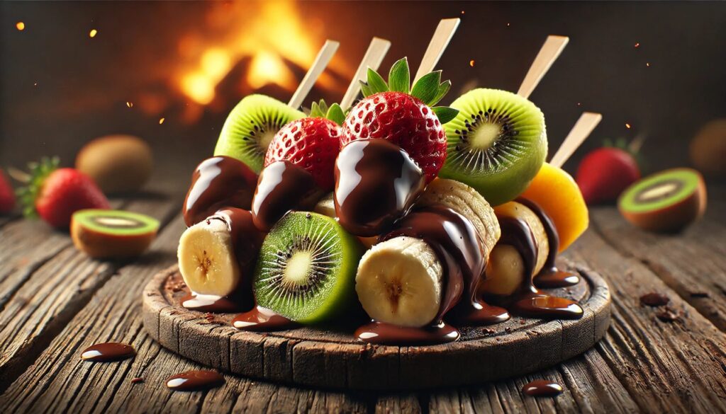 焚火を囲みながら、甘くてとろけるフルーツ串のチョコレートディップをぜひお楽しみください!