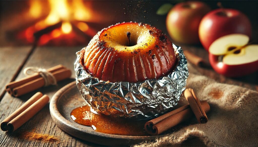 作る時のポイントは、リンゴの芯をくり抜いた部分にバターや砂糖、シナモンを詰めて、アルミホイルでしっかり包むこと。 これで焦げ付きを防ぎつつ、リンゴの中までじっくり火を通せます。